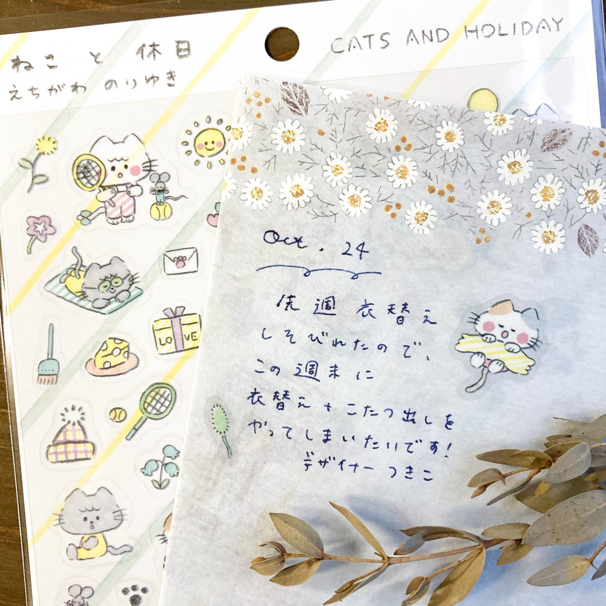 10/24 #メモ帳交換日記 衣替えが気温に追いついておらず、今週は手前にあったニットをなんとか着まわしてしのぎました🧣 今日は、大森木綿子さんの「Slow Life」便箋に えちがわのりゆきさんの新作シールを貼ってみました💤 cozycaproducts.shop-pro.jp pic.x.com/9SVf4Ezhpt