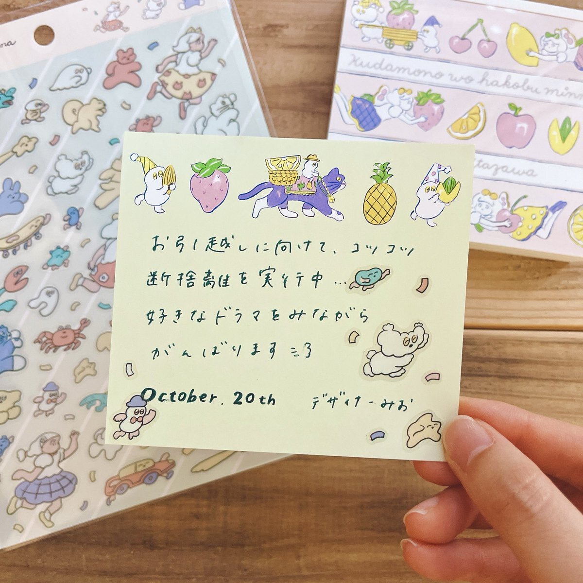 10/20 Mon. #メモ帳交換日記 お部屋の片付け、大変ですが終わったときの達成感を目指して頑張ります📦 今日のメモは、北澤平祐「くだものをはこぶみんな」に、新作のシール「はしるはしるみんな」を合わせました💨 頑張っているみんなたちに癒されますよ〜☘️ cozycaproducts.shop-pro.jp/?mode=grp&gid=… pic.x.com/zxrVPgmxWj