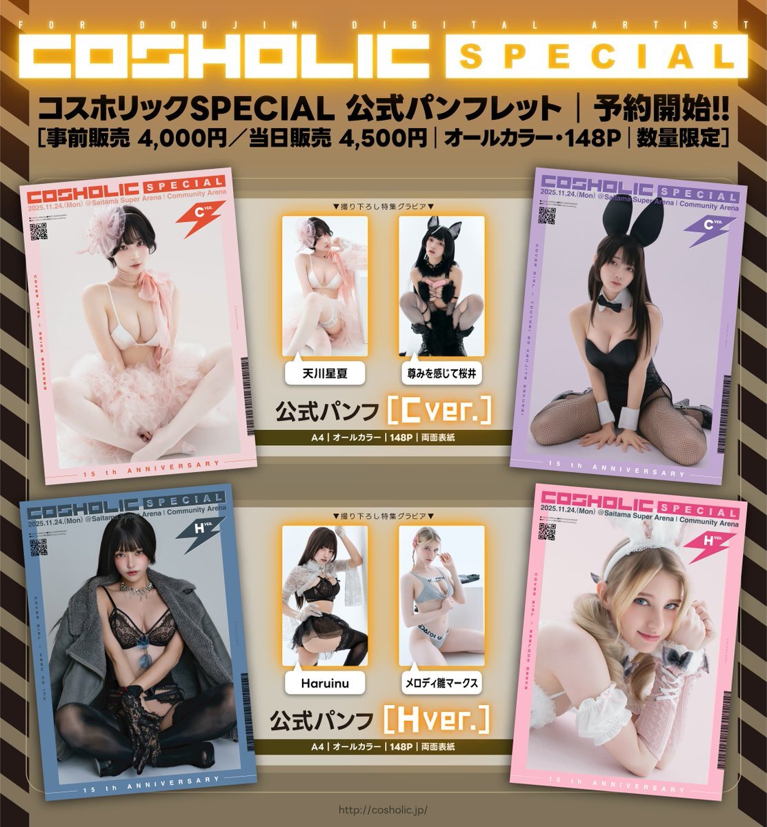 11/24(月・祝)#さいたまスーパーアリーナ にて開催の #コスホリックSP 公式パンフレット入場券 今なら購入できます! #秋葉原 電気街口より徒歩1分圏内 本日も21時まで営業しておりますので是非ご来店ください★ 【表紙モデル】 #尊みを感じて桜井 #天川星夏 #はるの犬 #メロディー・雛・マークス pic.x.com/yKFXkVWvYA