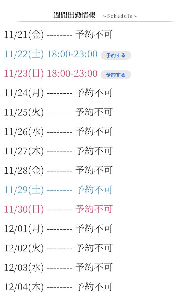 三連勤です‼️🎀 ご予約お待ちしています♪♪ 居てる時間⏰♡ 11/21 17:00〜29:00 11/22 14:00〜21:00 11/23 14:00〜22:00 @Ribbon_Style_N #メンエス #メンズエステ #日本橋 #ミナミ #風俗嬢 #メンエス好きと繋がりたい #いいねください pic.x.com/u072Db9VTO