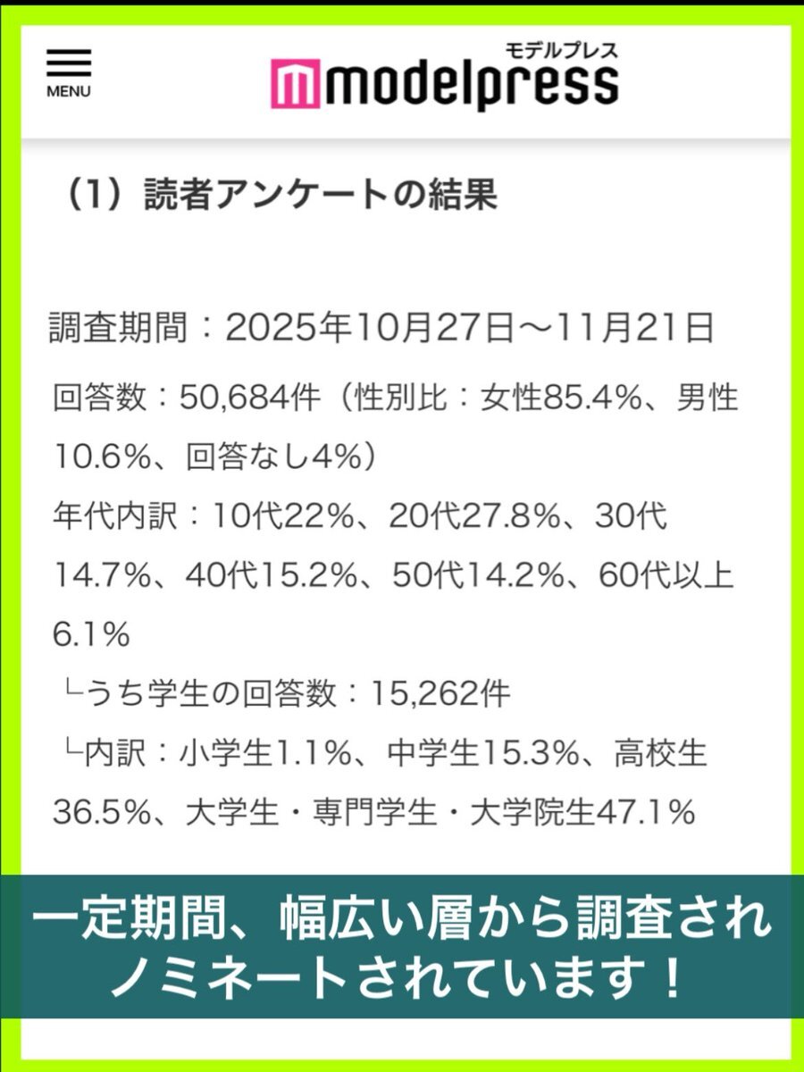 返信先:@WJF_GASHIMA家族も巻き込み投票しました😊 ノミネートされたからには何とか大賞を‼️ファンのみんなで協力してがんばる👊✨ #モデルプレス流行語大賞2025 #SHIROSE