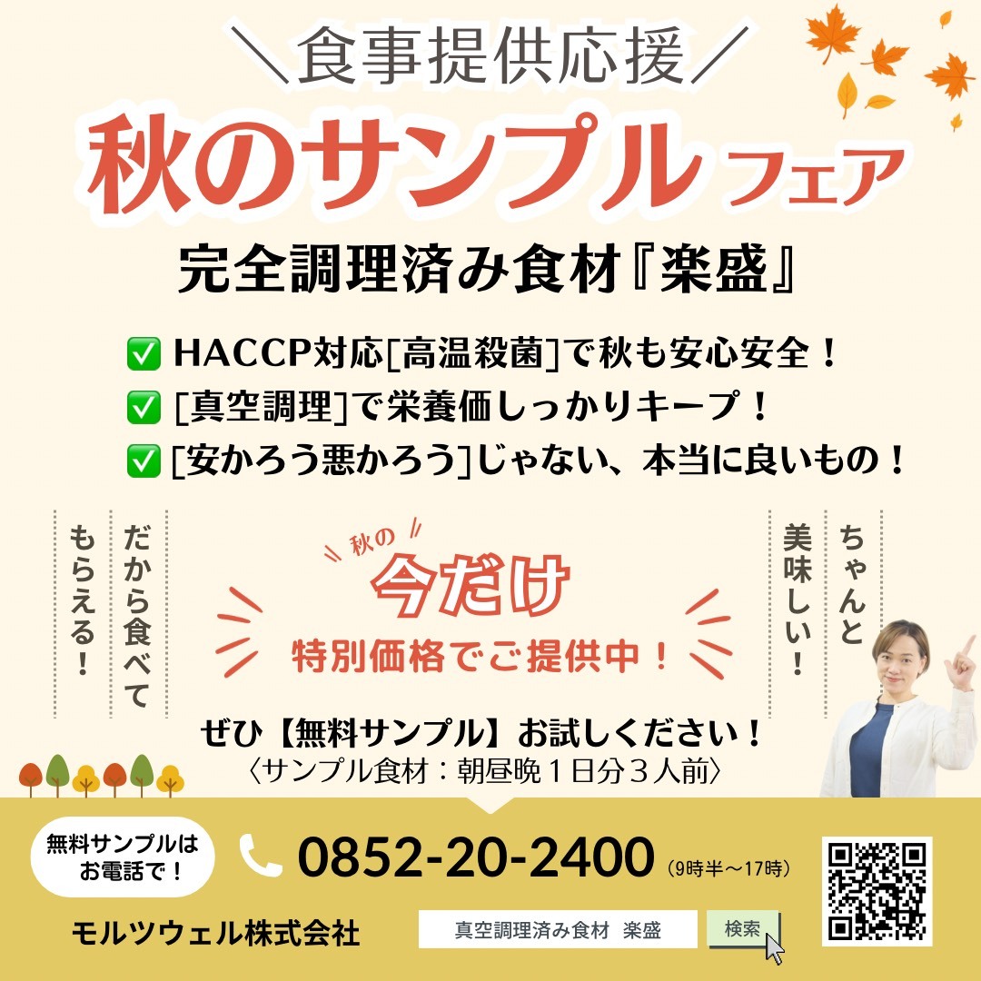 / モルツウェルから 介護施設・病院の食事提供応援 #秋のサンプルフェア! \ 営業のY Morzwell.co.jp #モルツウェル #安心安全 #食事で経営改善 #食の秋 pic.x.com/zMBq1m3EXo