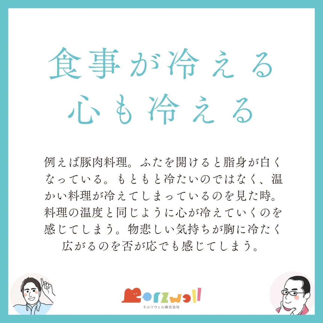 食事が冷える 心も冷える これって本当です。 外食で温かい食事は当たり前ですが、介護施設の食事は冷めて提供されることは多いです。 モルツウェルは誓います。 介護施設でも温かい食事を当たり前にしていきます。 morzwell.co.jp #モルツウェル #介護施設 #温かい食事を当たり前に pic.x.com/wd46ixHm9i