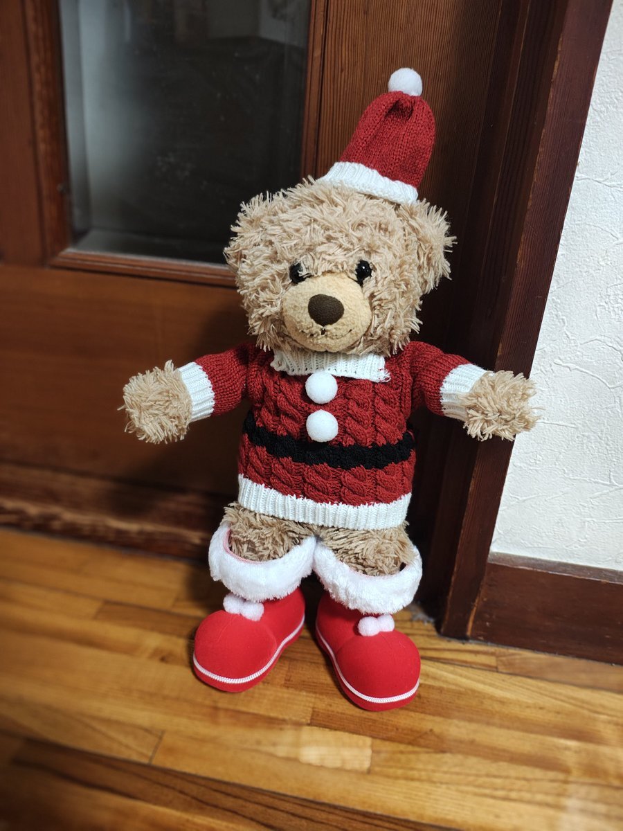 #モンゴール天山の1日1ヒール 姉貴からもらったペットボトルウォーマー とは知らずに、熊のゴンザレスにぴったりやと思って着せ、帽子は安全ピンでとめた が、朝見ると帽子がない💦 旦那がかわいそうに思って外しよった😂 私もがさつやったわ😅 帽子にゴム紐を付けて、靴も揃えたよ❤️ファイッ🎄 pic.x.com/P9eJt0mQbq