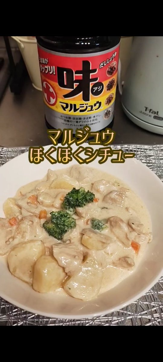 #モンゴール天山の1日1ヒール 味マルジュウで毎日の献立チャレンジ 今夜はシチュー 材料を炒めて小麦粉を絡め、牛乳を入れる コンソメで味付けするところを、初の試みで味マルジュウで✨ バターとの相性が良く、コクのある和風シチューができました! これはクセになる😆 ほくほく、ファイッ❤️ pic.x.com/Sfb7W0Kz7e