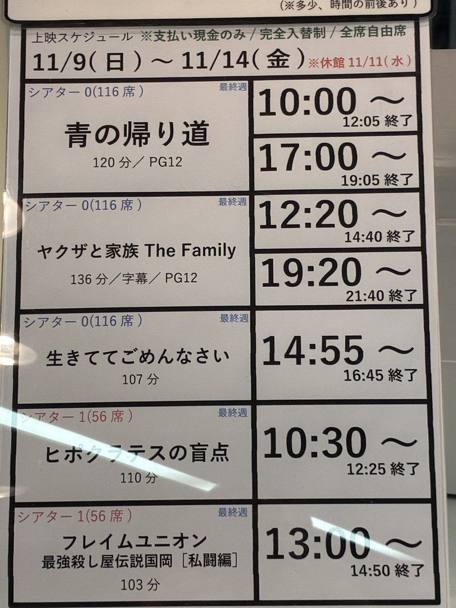 l◤本日より1週間開催◢l #全国ミニシアターキャラバン In群馬・ #前橋シネマハウス 📅11月8日(土)〜11月14日(金) 🎬『生きててごめんなさい』 🎬『青の帰り道』 🎬『ヤクザと家族 The Family』 retrospective.babel-pro.com/maehashicinema/ 本日14:55〜回は舞台挨拶も実施。 是非ご来場ください。