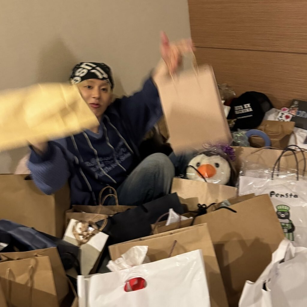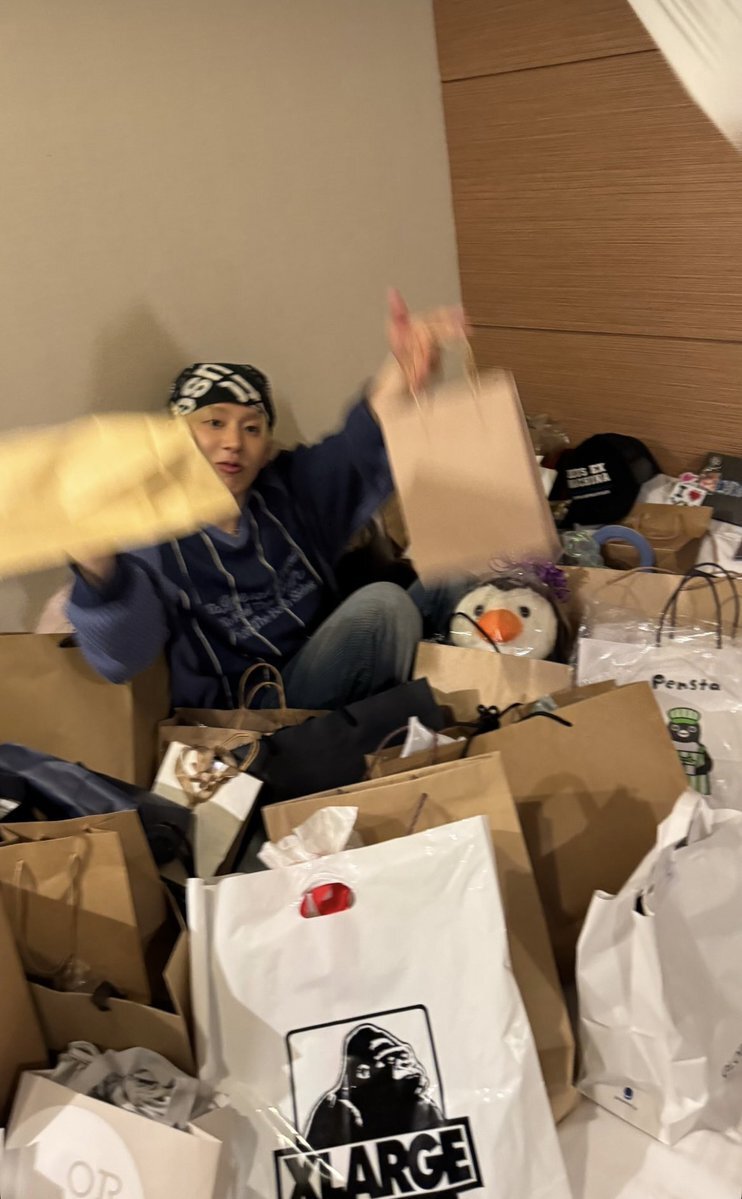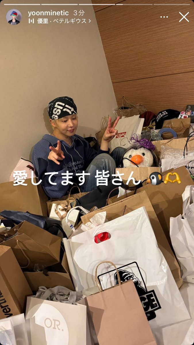 プレゼントに囲まれててかわいい🤦🏻‍♀️ 私のプレゼントもどこかにあるはず🐧🐧 日本を存分に楽しんでください! #ユンミン日本に来てくれてありがとう @yoonminetic pic.x.com/wCAdnlQkC0