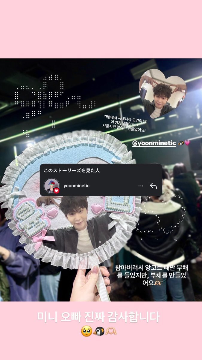 251109 YOONMIN Fan-Con in TOKYO 下手ながらも頑張って作ったうちわ🫶🏻 たぶんうちわで3秒✖️2くらい見つめてくれたかな🥺ིྀ鞄に入れてたから形崩れているけどᐡ´ㅠ ‧̫ ㅠ`‍ᐡ 次のファンミでも持っていきたいな🥹 ユンミンくんからいいねが😭😭😭 #ユンミン日本に来てくれてありがとう pic.x.com/I9rNiGAiaE