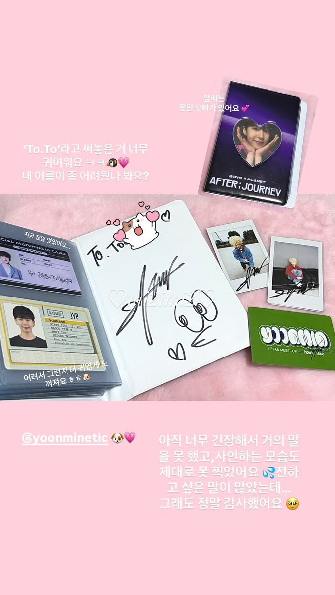 251109 YOONMIN Fan-Con in TOKYO サイン✍️ To. To可愛すぎる🐧💗 名前の発音が難しく聞き取れなくて焦らせてしまったかな🥺 慣れてなくて話せなかったし、サインする姿も撮れなかった(ᐡт тᐡ)💦撮らない代わりに、横にいて近かった🙃 次も会えますように😭🫶🏻 #ユンミン日本に来てくれてありがとう pic.x.com/VjzhRGNwJV
