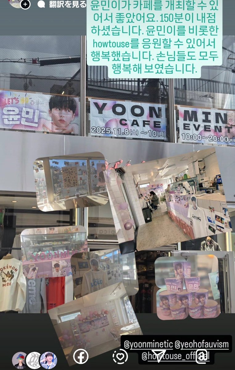カフェの報告投稿に、ユンミンとYEOHOさんからいいねと、ユンミンから 「ううう、本当にありがとうございます😭😌😔」 とお返事が来ました。 寝ないで頑張ったスタッフ、一緒に盛り上げてくれたお客様への言葉かと思います🤗✨ 皆様、本当にお疲れさまでした。 #ユンミン日本に来てくれてありがとう pic.x.com/wlldLH4sJ9
