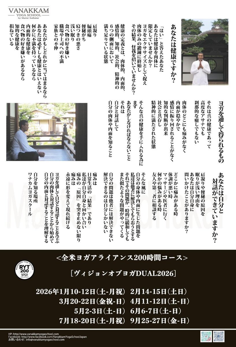 五年後、十年後 なりたい自分も ありたい未来も 今の自分が創る まずは、一月半後の 自分の行為を決断する 来年1月、全国のご自宅で始動 ヴィジョンオブヨガDUAL2026byマスター・スダカー booking.vanakkamyogaschool.com/shopdetail/000… #ヨガ #ヨガ指導者養成講座 pic.x.com/VTzt7i1QMF