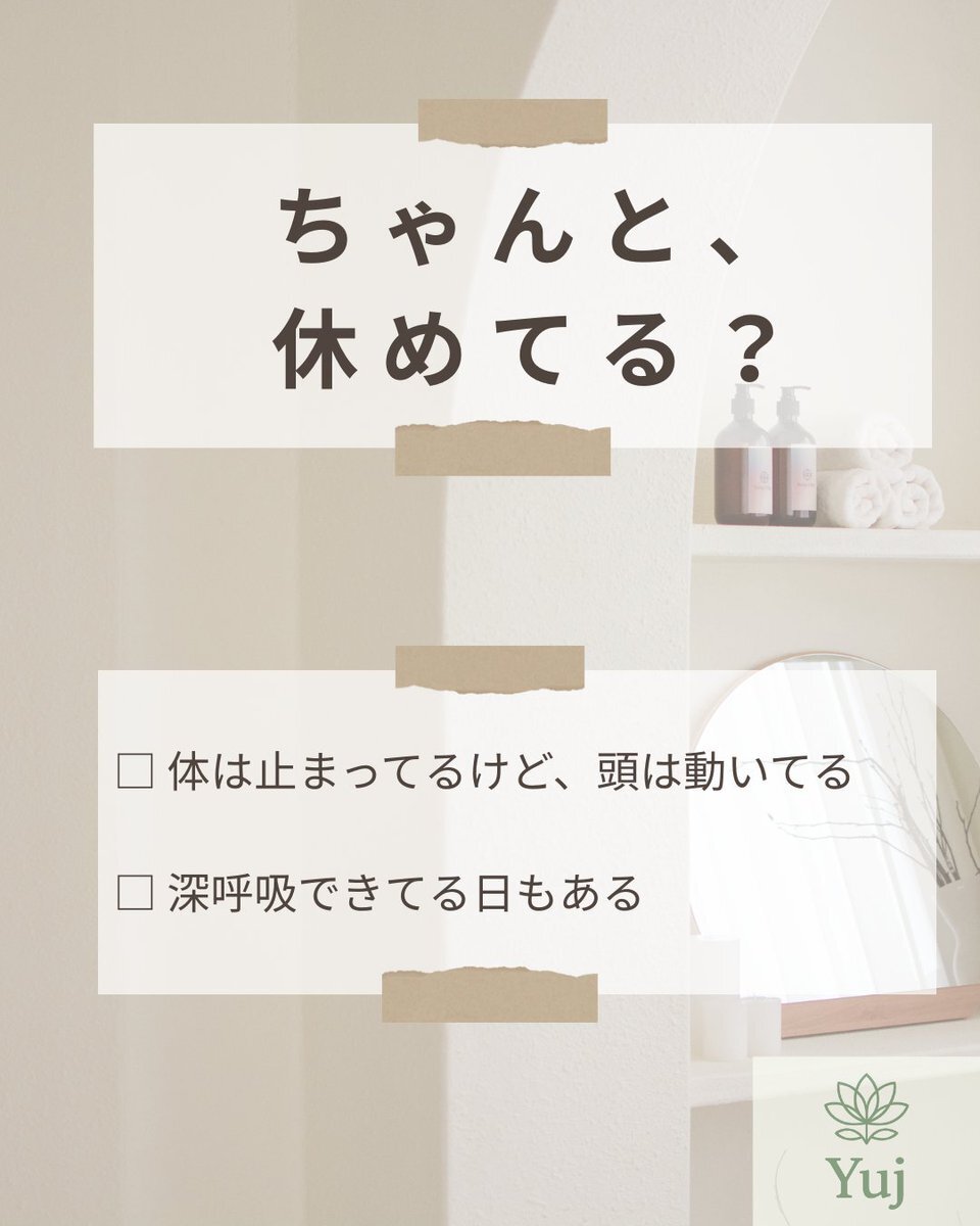 「休みたいのに、頭が止まらない」 そんな日、ありませんか? コメントで☑︎してみてください。 休むことは、止まることじゃなく“戻ること”かもしれません。 #ヨガ習慣 #心の余白 #深呼吸の時間 #yujyogaai pic.x.com/FmP7HxIWaQ