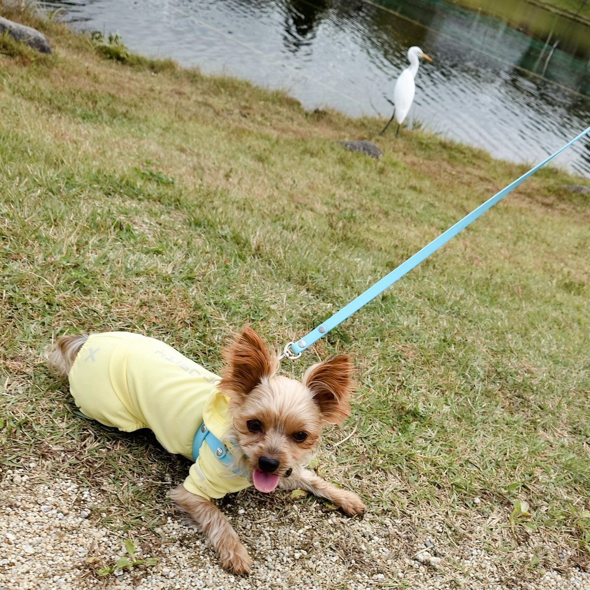ぷこが地面にへばりついてるのは、うしろの白い鳥さんに近づきたくないからでは、断じてない! #ヨークシャーテリア #ヨーキー pic.x.com/60c0eyDa54