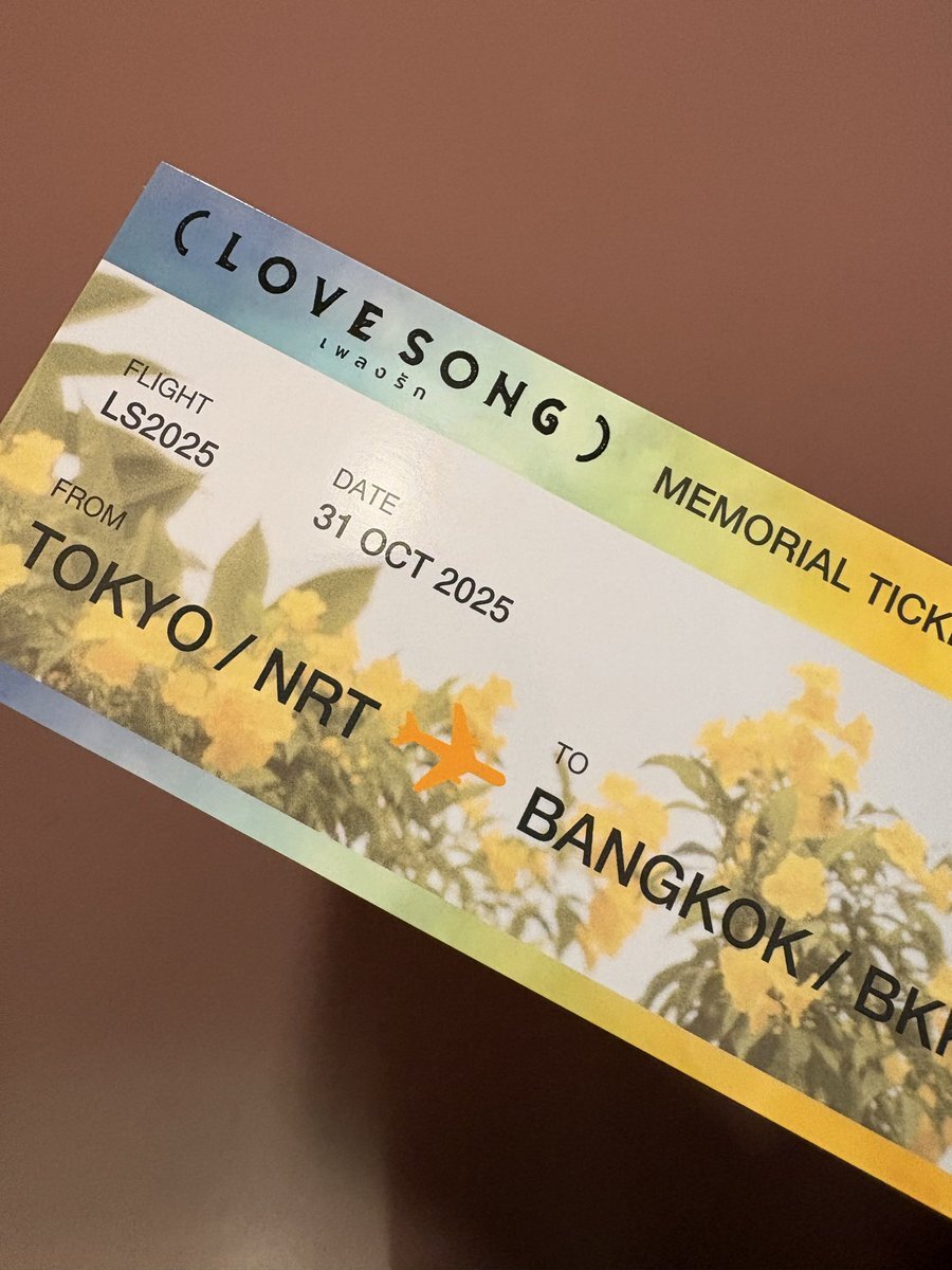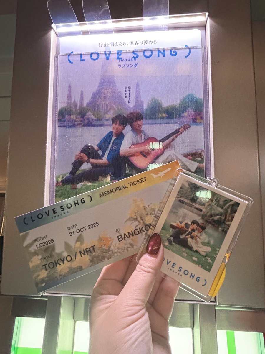 ⋰ 入場者プレゼント第3弾配布中! ⋱ QRコード映像特典付きふたりのメモリアルチケット✈ 二次元コードから先行視聴できる特典映像の一部をチラ見せ👀 バンコクでの取材やイベントの舞台裏をぜひご覧ください✨ 配布は11/20(木)まで ※なくなり次第終了 映画『(LOVE SONG)』絶賛上映中