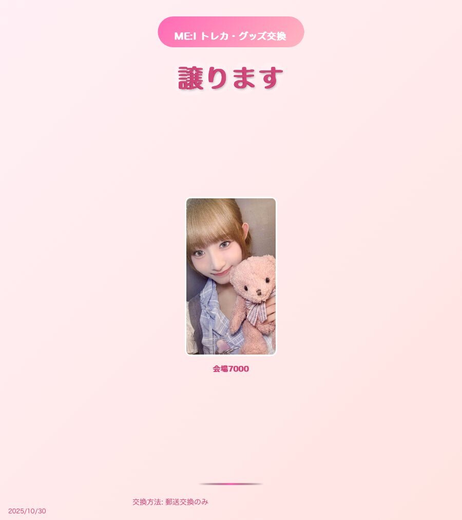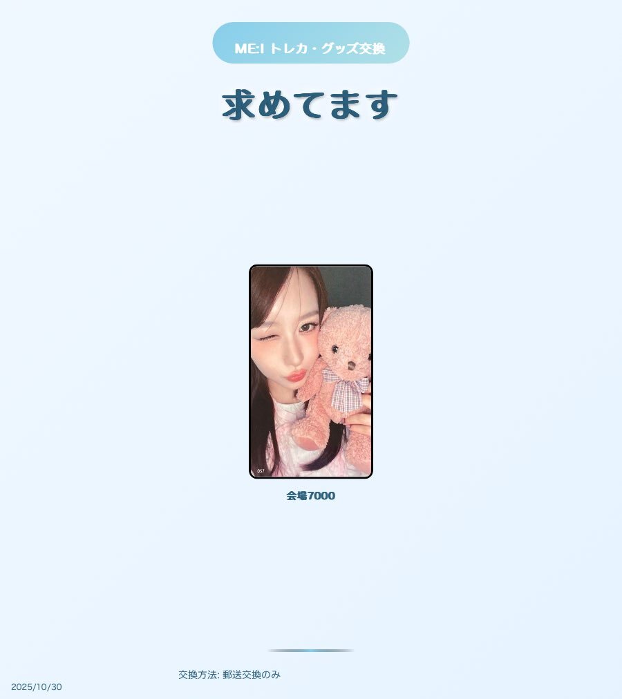 譲→1枚目~ リプ 求→買取 >>佐々木心菜リプ 郵送≫都内手渡し 交換が難しい場合♡のみ #ME_I交換 #交換 #ラントレ ME:I me:i ラントレ トレカ 特典 who i am pic.x.com/vuqlgD1FXw