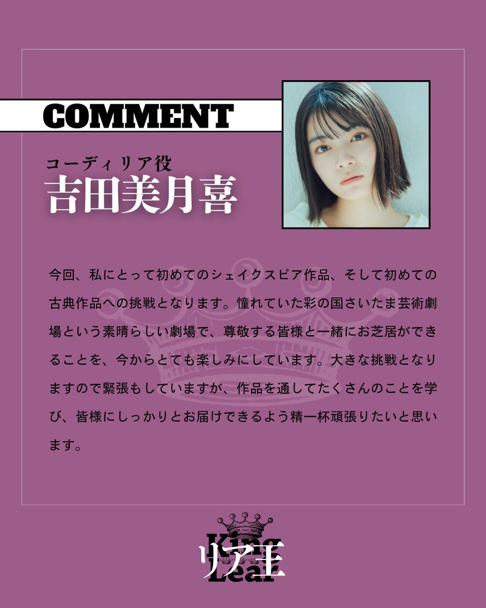 【吉田美月喜】 彩の国シェイクスピア・シリーズ 2nd Vol.3『リア王』に出演決定✨ #吉田美月喜 #リア王SSS2 #PR スターダストプロモーション stardust.co.jp/news/item-4988… pic.x.com/6lcmVuBfRc