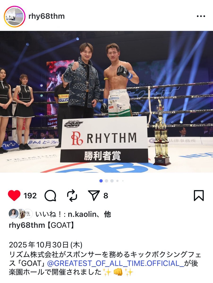 私のサロンでお世話になっている美容メーカーがキックボクシングの興行のスポンサーに🥊✨ #リズム株式会社 #炭酸ガスパック #キックボクシング #goat instagram.com/p/DQdgA8bklBF/… pic.x.com/AaPgBR0Ty0