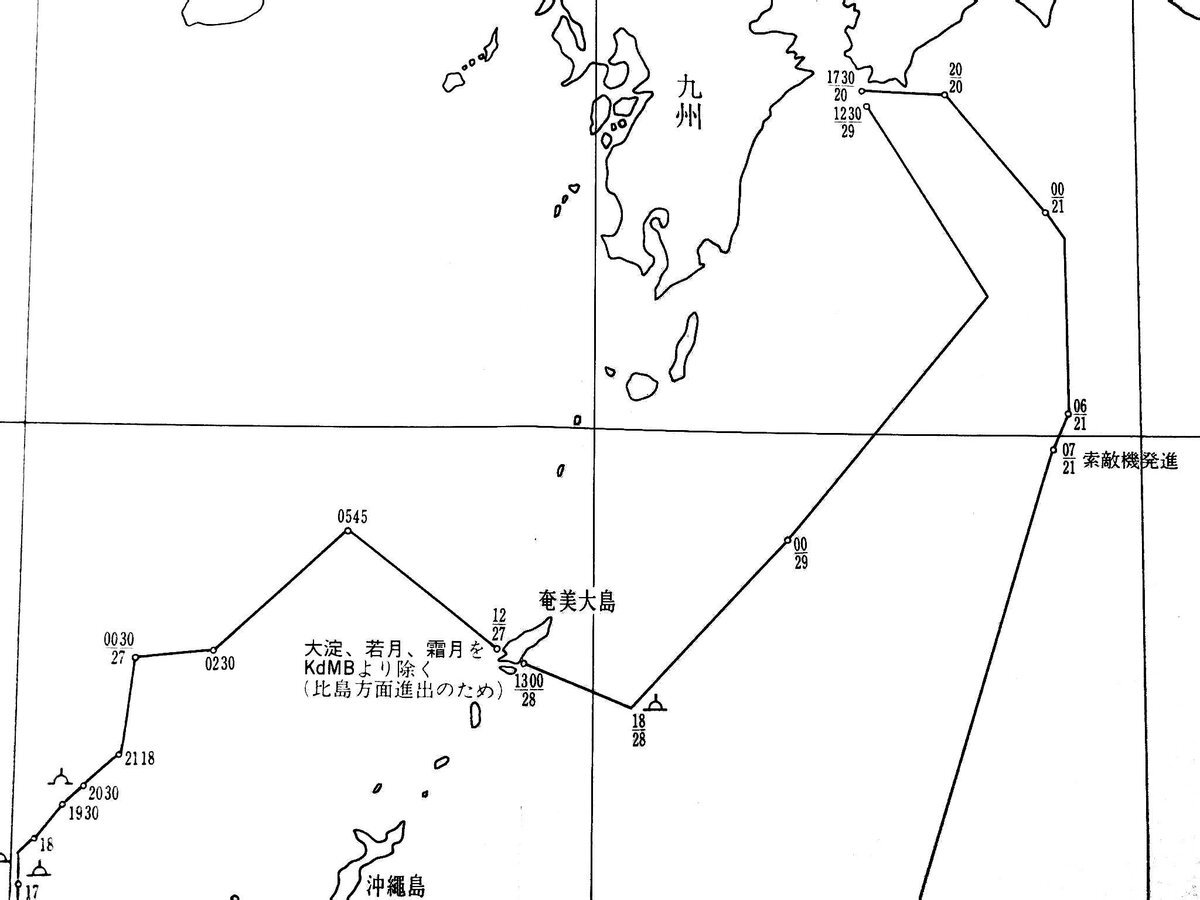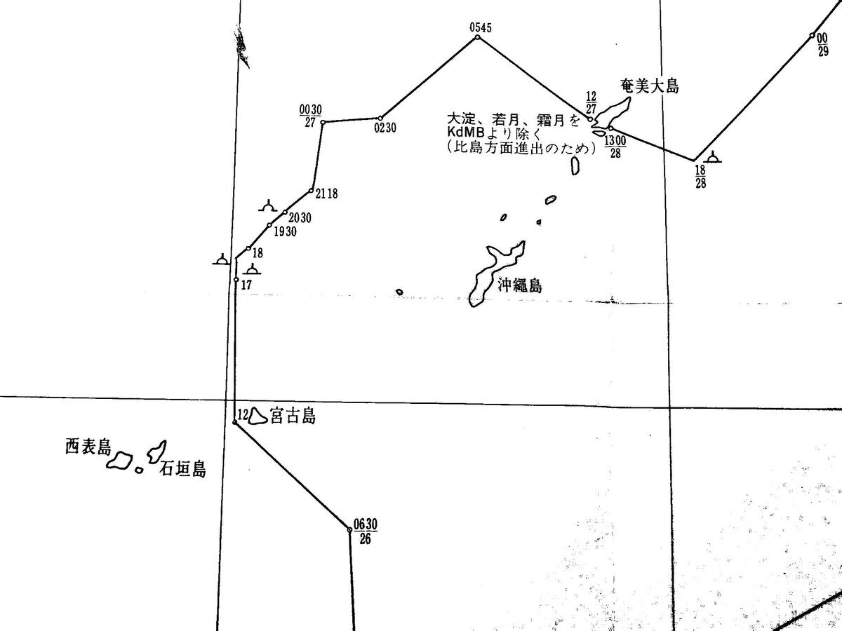 1944年10月26日 小澤艦隊 12:00、艦隊は宮古島海峡を通過して東シナ海に抜け、その後北上を続けた。 #レイテ沖海戦 pic.x.com/73WklpOPnw