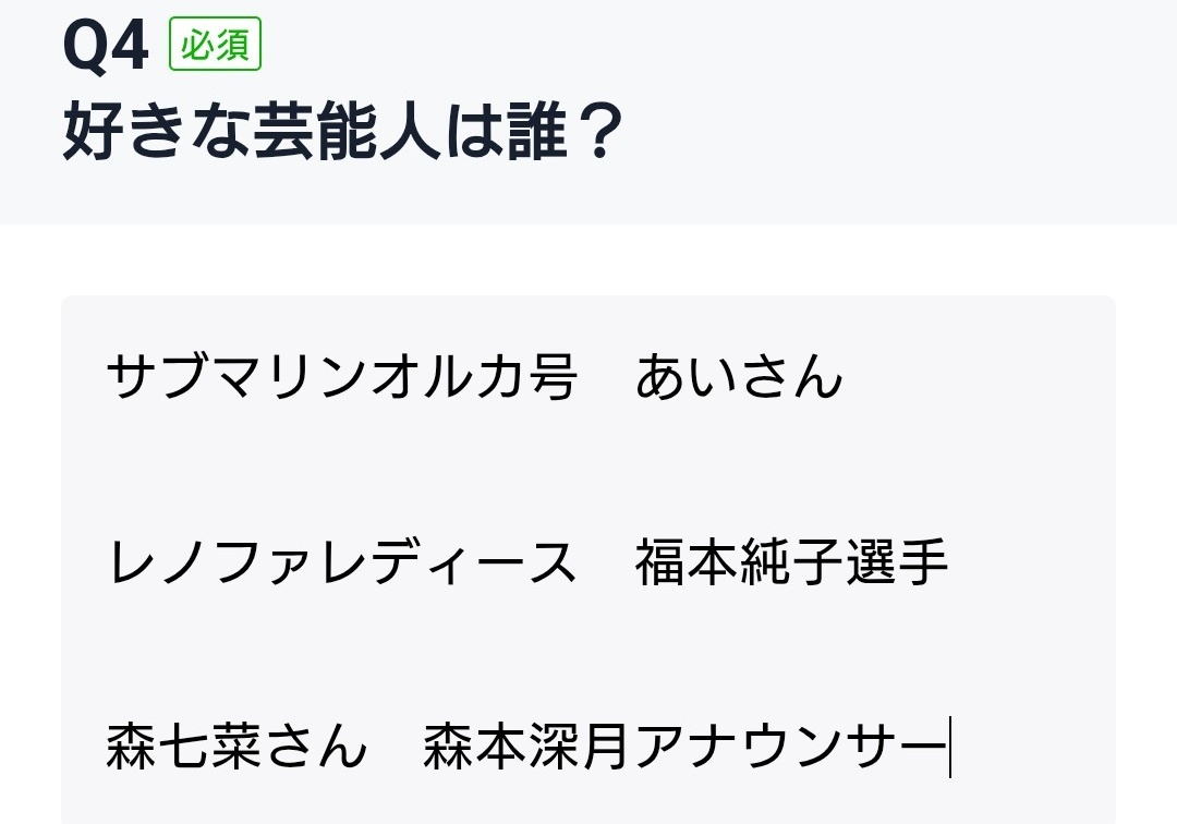 ちぐまやのアンケート。 「推し」についてだったので この四人書いておいたw #サブマリンオルカ号 #あい さん #レノファレディース #福本純子 選手 #森七菜 さん #森本深月 アナウンサー ちぐまやに、映画告知で 森七菜さん来ませんか!? 県庁所在地なのに 映画館がないような所ですけど😹 pic.x.com/2LzSvZ6Git