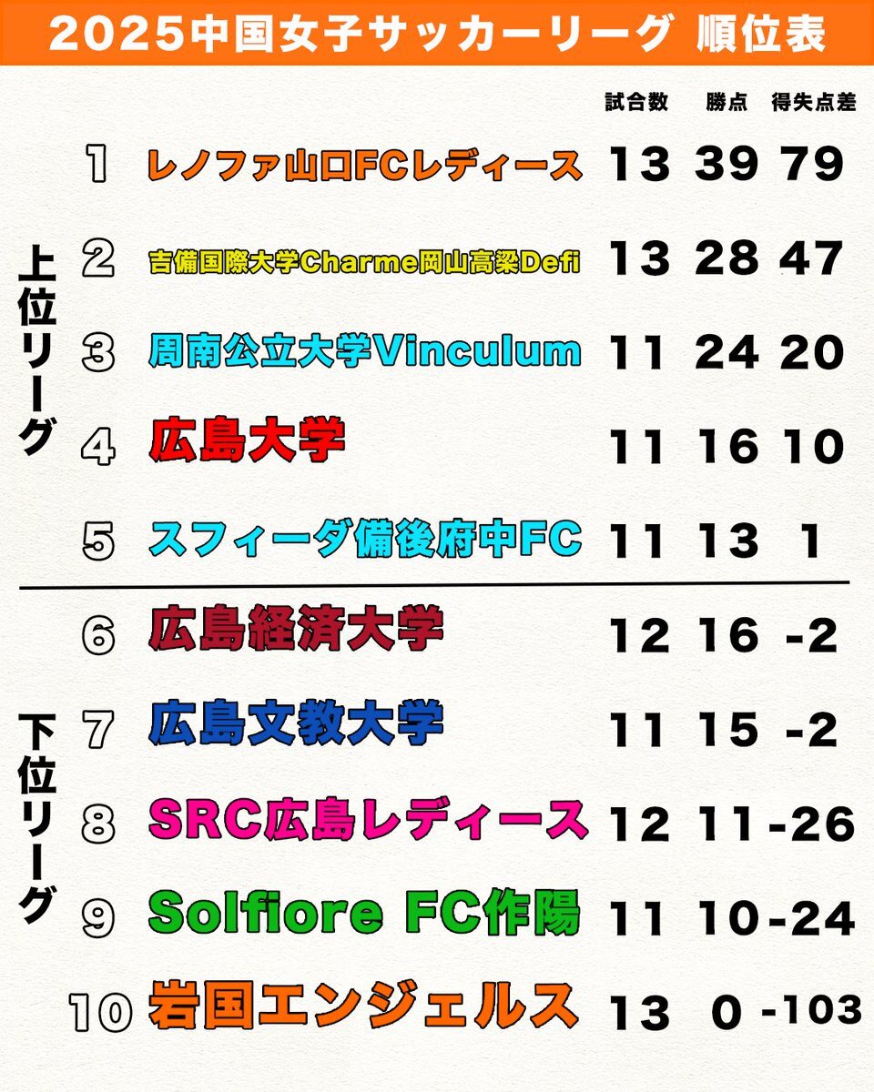 🟠⚪️ GAME RESULTS ー 🏆中国女子サッカーリーグ 後期第1節 🆚スフィーダ備後府中FC 🔥6-0(3-0/3-0)WIN ⚽️#浅田梨花 ×2 #市川芽依 ×2 #田中陽子 #イジョンウン 14戦全勝&無失点で完全制覇💯 1年間どんな時もどんな場所でも 多くの後押しをありがとうございました🙇♀️ #レノファレディース