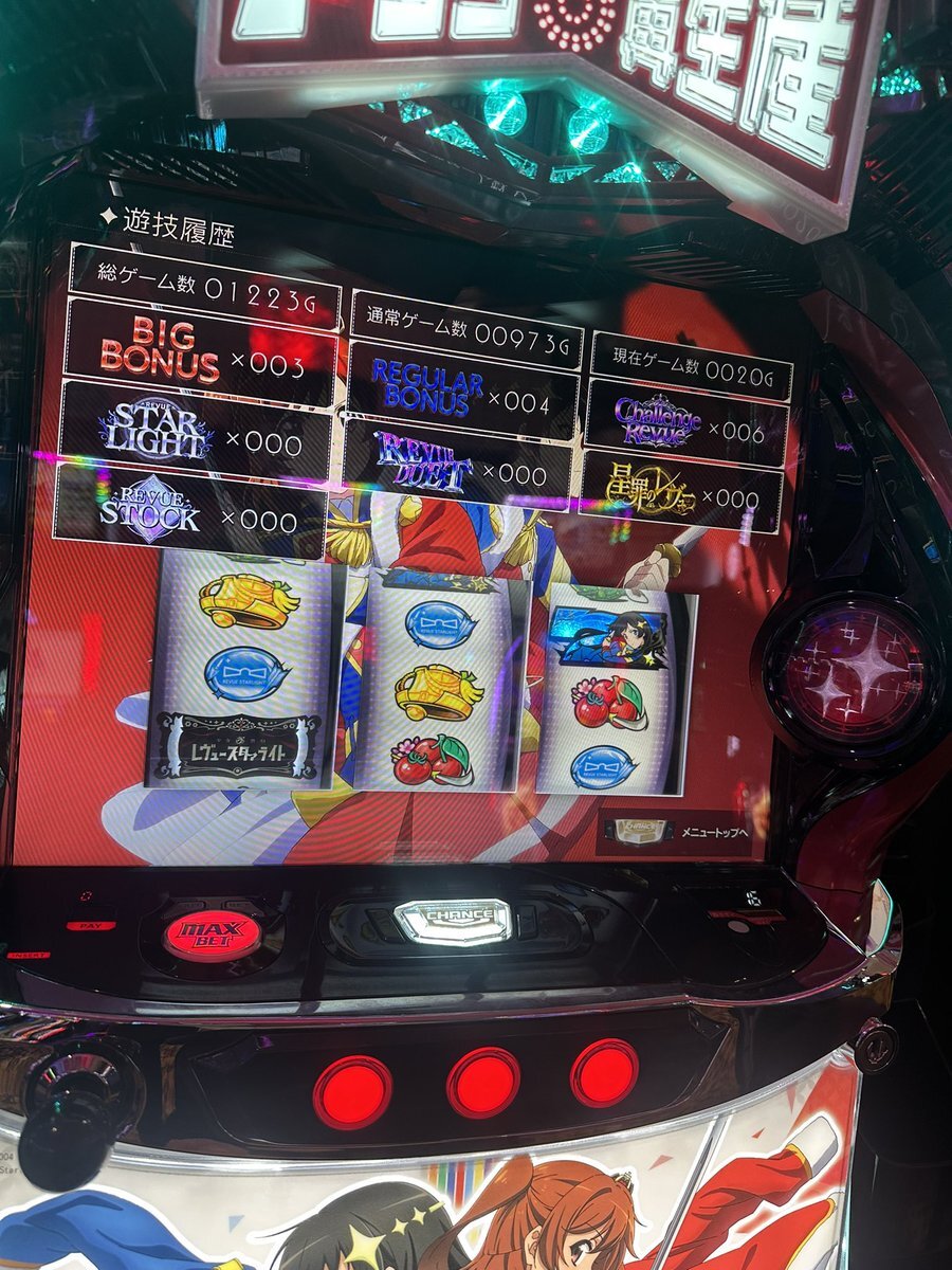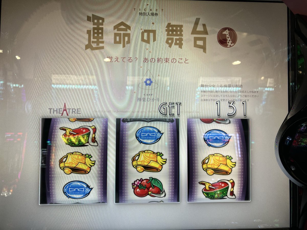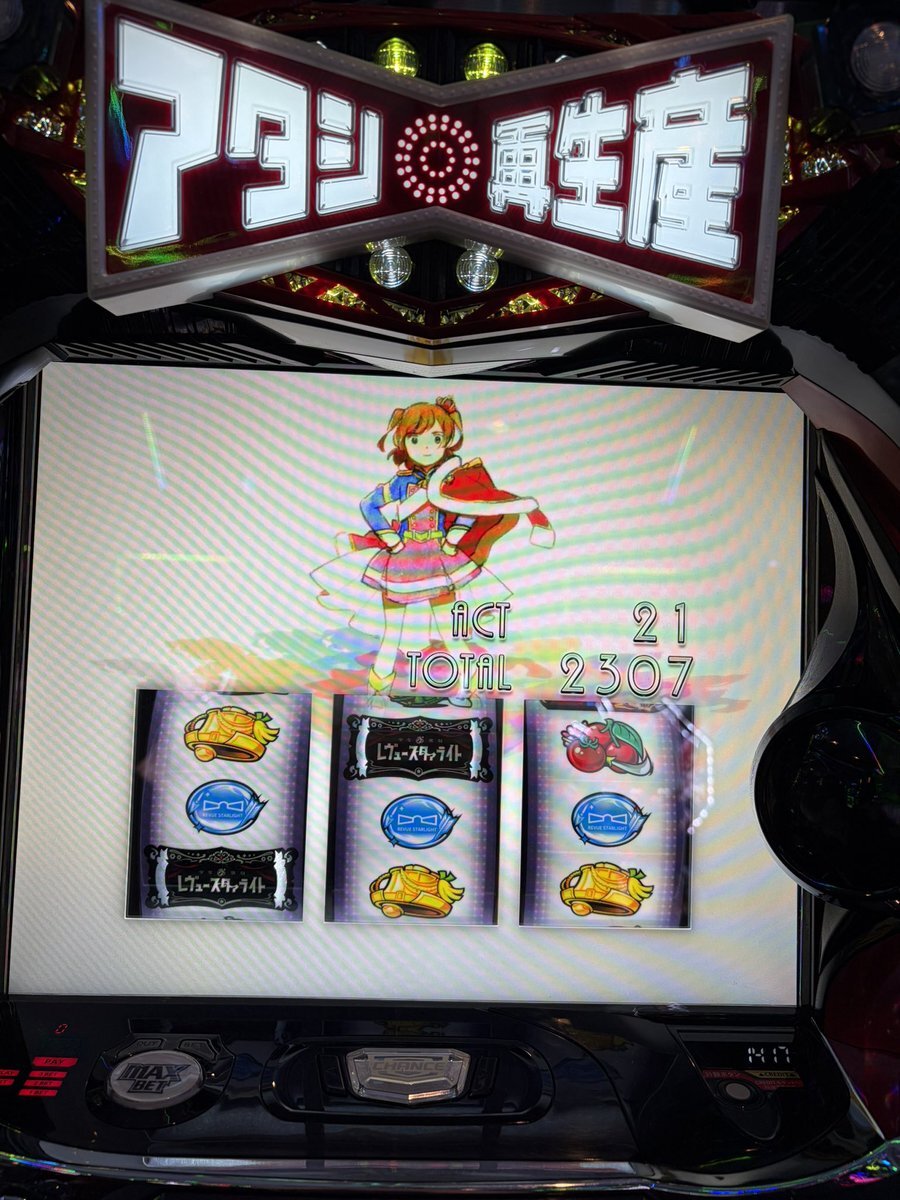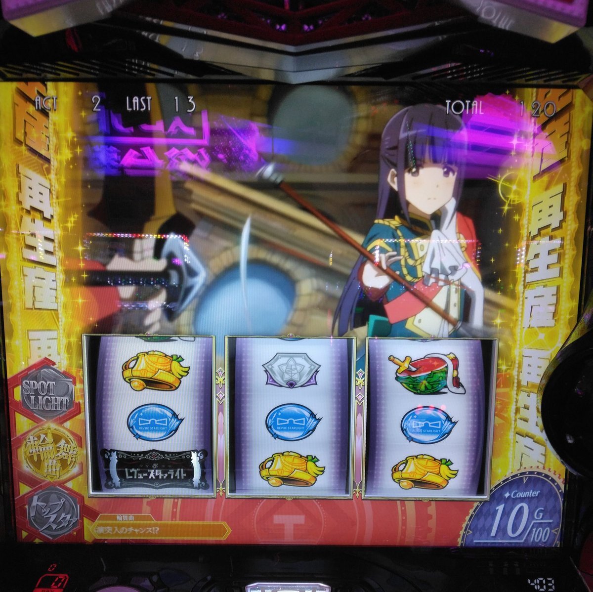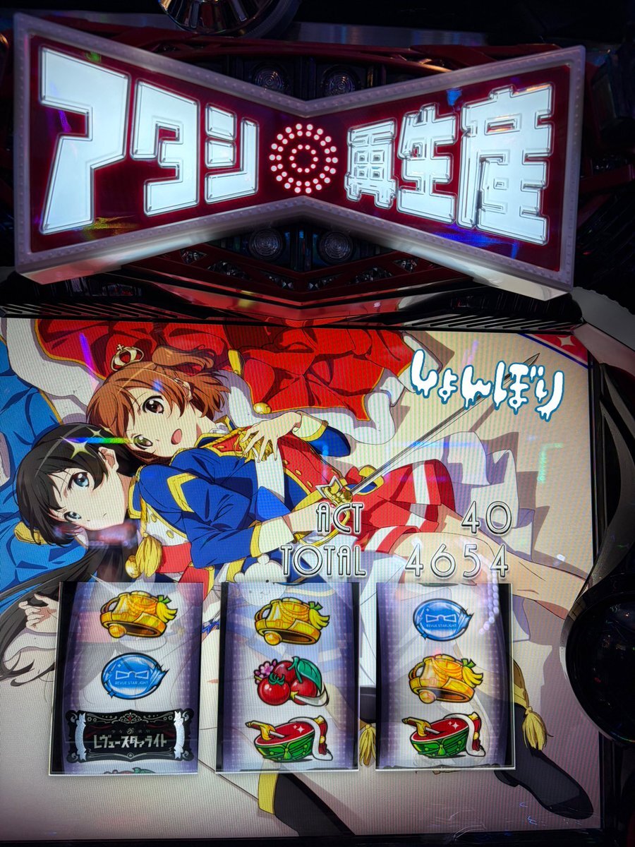 終わっちゃった… ツラヌキは成功したけど、50%のポジションゼロモードは取れずで、下位AT2セット持ちでスタートしたけど駆け抜け😩 一撃5,000枚行きたかった🥺 #レヴュースタァライト pic.x.com/fhjIxHUkUv