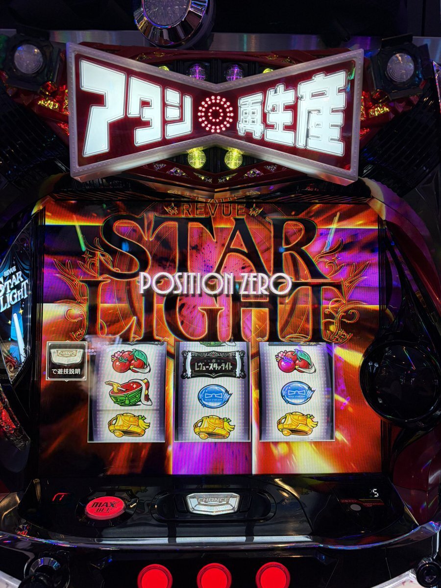 ストックが減るどころかどんどん増えていってૢ( °͈ᗨ°͈ૢ)たのスイィイィᰔᩚ あ、再生産モードはストックが2個以上あるとずっとループするみたい🤔 だからずっと赤7BIGが待機した状態だからボーナスの抽選はしてないのか😓 #レヴュースタァライト #ポジションゼロモード #再生産モード pic.x.com/bfCaLOMW45