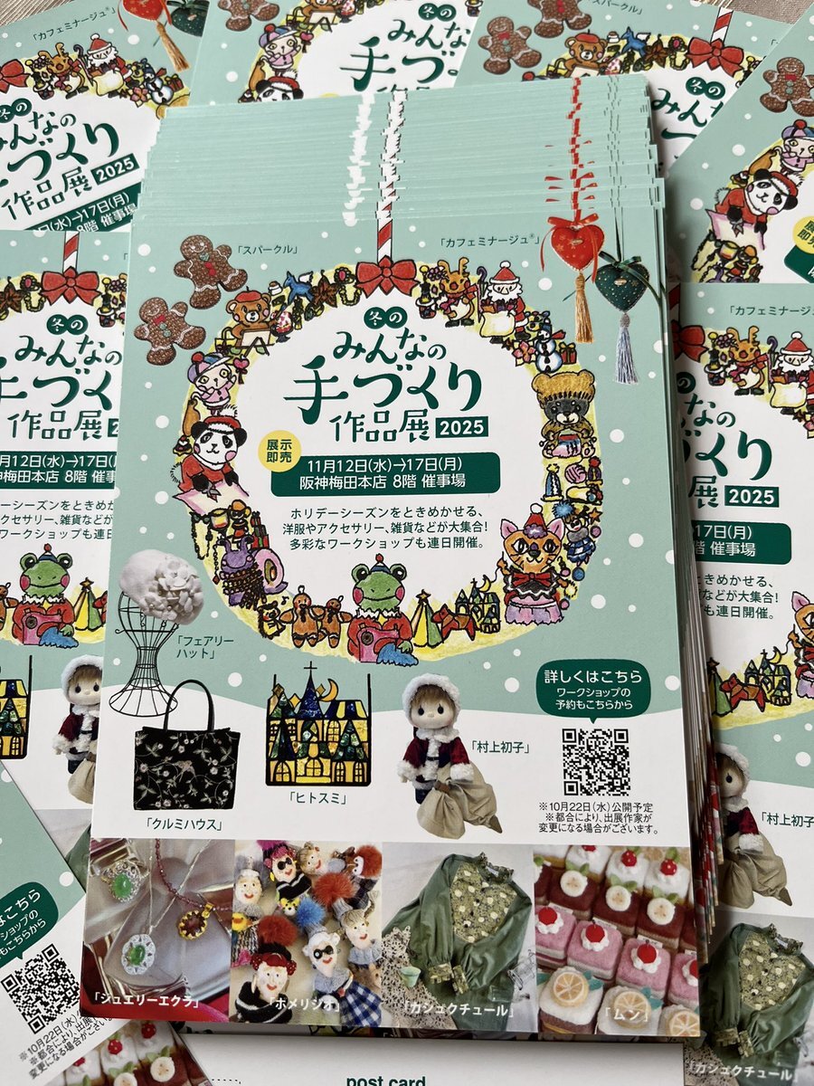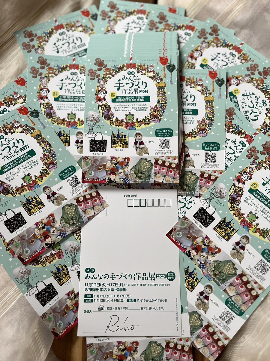 搬入を終え、さあ明日からの催事です☺️ 気になる作品がありましたら お早い目に、お越し下さいませ😊 冬の みんなの手づくり作品展2025 2025年11月12日(水)→17日(月) 午前10時→午後8時(最終日は午後5時まで) 阪神梅田本店8階催事場 REICOは、通期6日間(全日)出展です♪ #レース編み作家 #REICO pic.x.com/4WPbtslgTR