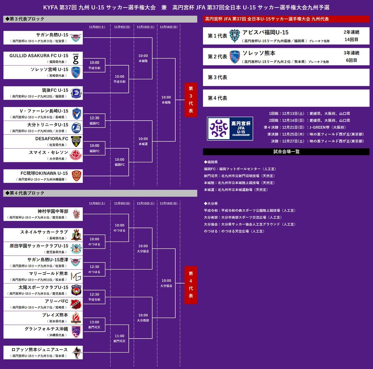 🏆KYFA第37回九州U-15サッカー選手権大会 兼 高円宮杯JFA第37回全日本U-15サッカー選手権大会九州予選 【第3代表ブロック】 ⚽1回戦(11/8) ①グーリッド朝倉(福岡代表)-ソレッソ宮崎(宮崎代表) ②V・ファーレン長崎(九州L6位)-大分トリニータ(九州L10位)