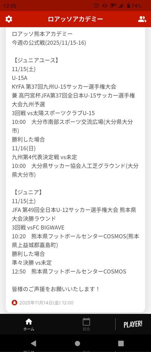 全国大会へ王手!明日決戦です! #ロアッソ熊本ジュニアユース x.com/roassoofficial…