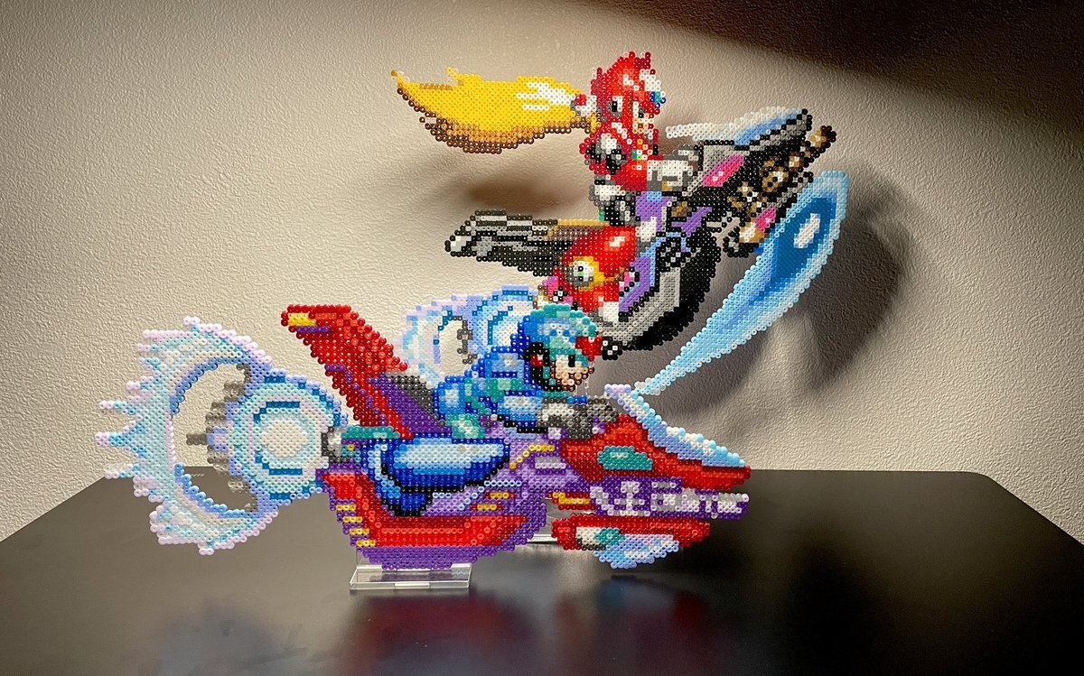 『ロックマンX4』より 『エックス & ゼロ withライドチェイサー』 ゲームではどちらか片方の主人公しか操作できなくても、アイロンビーズならこの通り同時出撃が可能です! ⋯この2人なら、ステージ途中でスティングレン倒しそうだな笑 #アイロンビーズでどこまでも #ロックマンX4 #MegaManX pic.x.com/DI8XvtXekX