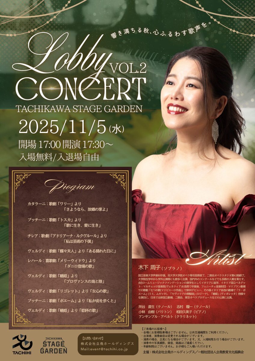本日 #立川ステージガーデン にて『TACHIKAWA STAGE GARDEN ロビーコンサートVol.2』を開催いたしました☺️🧡💙 歌手 #木下周子 さんらをお招きしての #ロビーコンサート 初となる歌唱のプログラム…!😳✨ ロビー空間に美しく響く #オペラ の魅力がたくさんの人に伝わる公演となりました🎶 #立川 pic.x.com/RIfCHglWEK