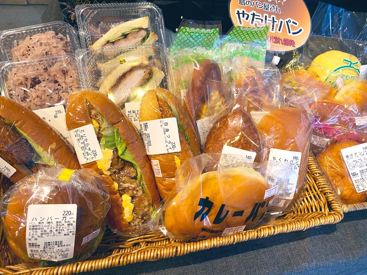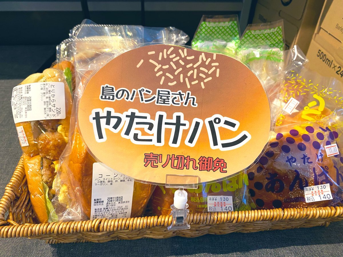 【やたけぱん🍞11/9(土)】 おはようございます😊 やたけぱん入荷しました〜♪ 10時オープンよりお待ちしております! #島パン #八丈島 #山田屋パンコーナー #離島コンビニ #地元パン #手作りパン #bakery #hachijoislands #ローカルフード pic.x.com/4S4DqFjCFN