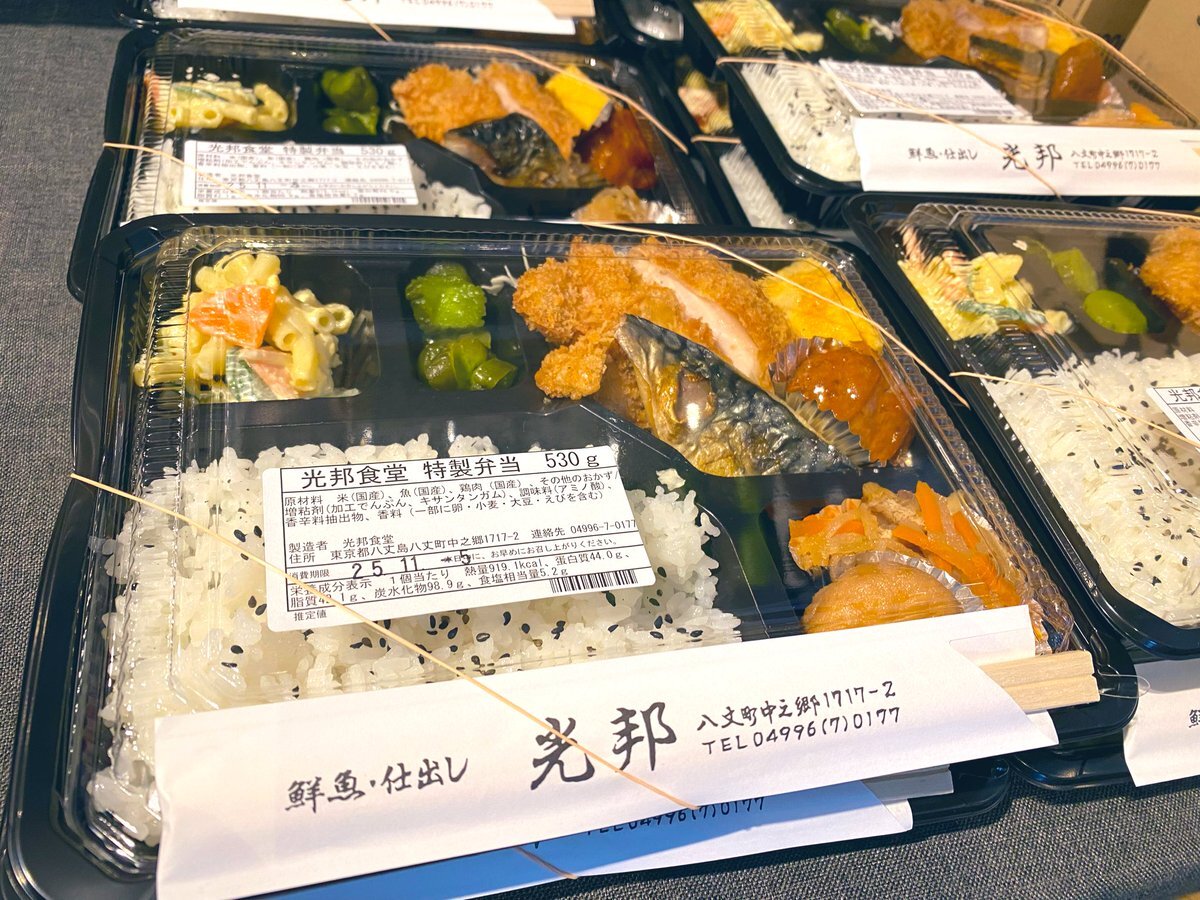 【お弁当🍱11/5(水)】 おはようございます! #光邦食堂 さん のお弁当が並びました〜! お待ちしております! 後ほど、三年目の浮気さんのお弁当も並びます♪ #山田屋弁当コーナー #離島コンビニ #ローカルフード #島弁当 #八丈島 pic.x.com/FbVobCvhTf