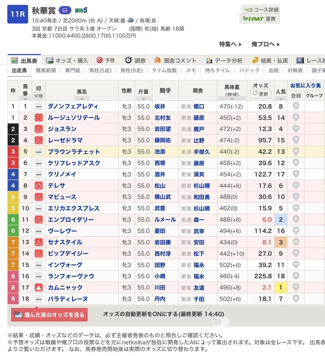 #秋華賞 #競馬予想 ◎17 #カムニャック ◯8 #テレサ ▲13 #セナスタイル △1 #ダノンフェアレディ ⭐︎18 #パラディレーヌ 穴2 #ルージュソリテール 久々に予想投稿 何やかんやで #ローズS の1〜3着みたいなね 穴はやっぱり2