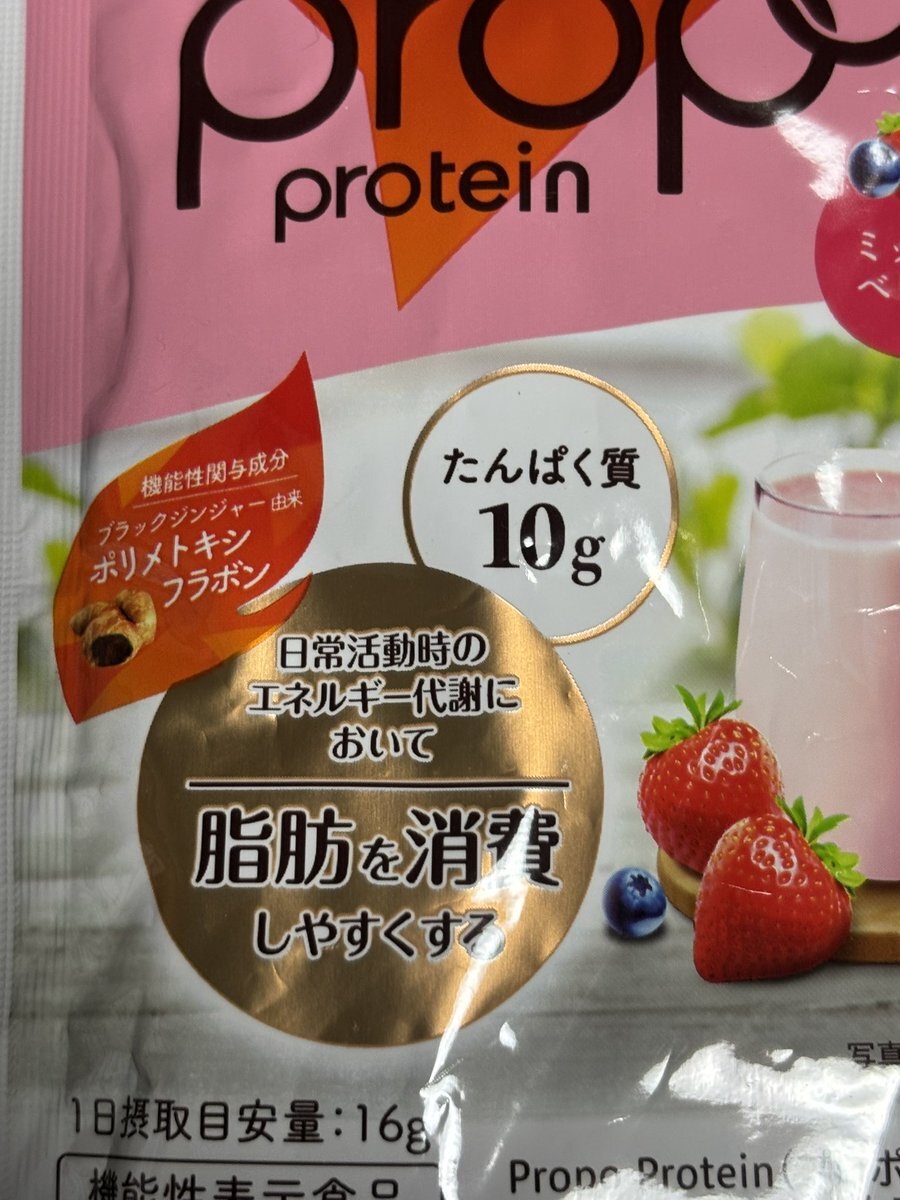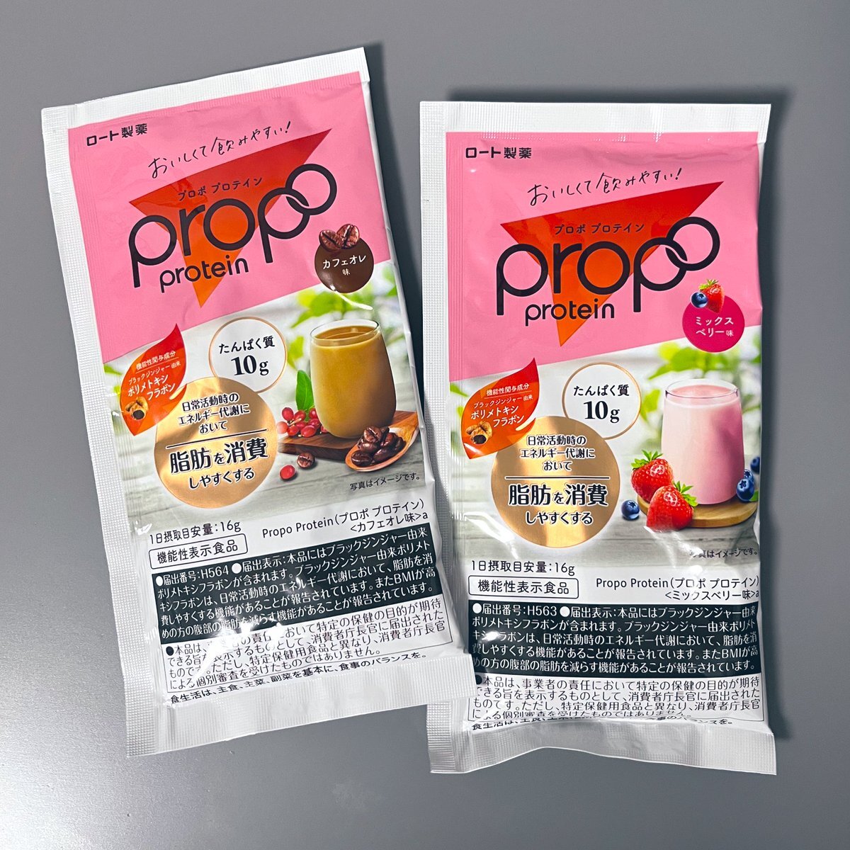 脂肪を消費しやすくする成分配合 1杯でたんぱく質10g 💪 そしてダイエット中にも嬉しい約60kcal ミックスベリー味は少し苦味もある感じ? 甘過ぎないのが良いです🙆♀️ #プロモーション #ロート製薬から提供いただきました #RSPに参加しました #RSP110 #サンプル百貨店 #プロポプロテイン #プロテイン pic.x.com/1nCLdAxwVN