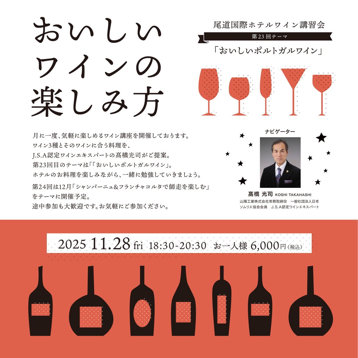 🍷✨尾道国際ホテル ワイン講習会✨🍷 第23回のテーマは 「おいしいポルトガルワイン」 ご予約はこちらから 👉 tablecheck.com/shops/onomichi… #尾道国際ホテル #ワイン講習会 #ポルトガルワイン #ワイン好きと繋がりたい #尾道グルメ #大人の pic.x.com/fcDwTWwbBc