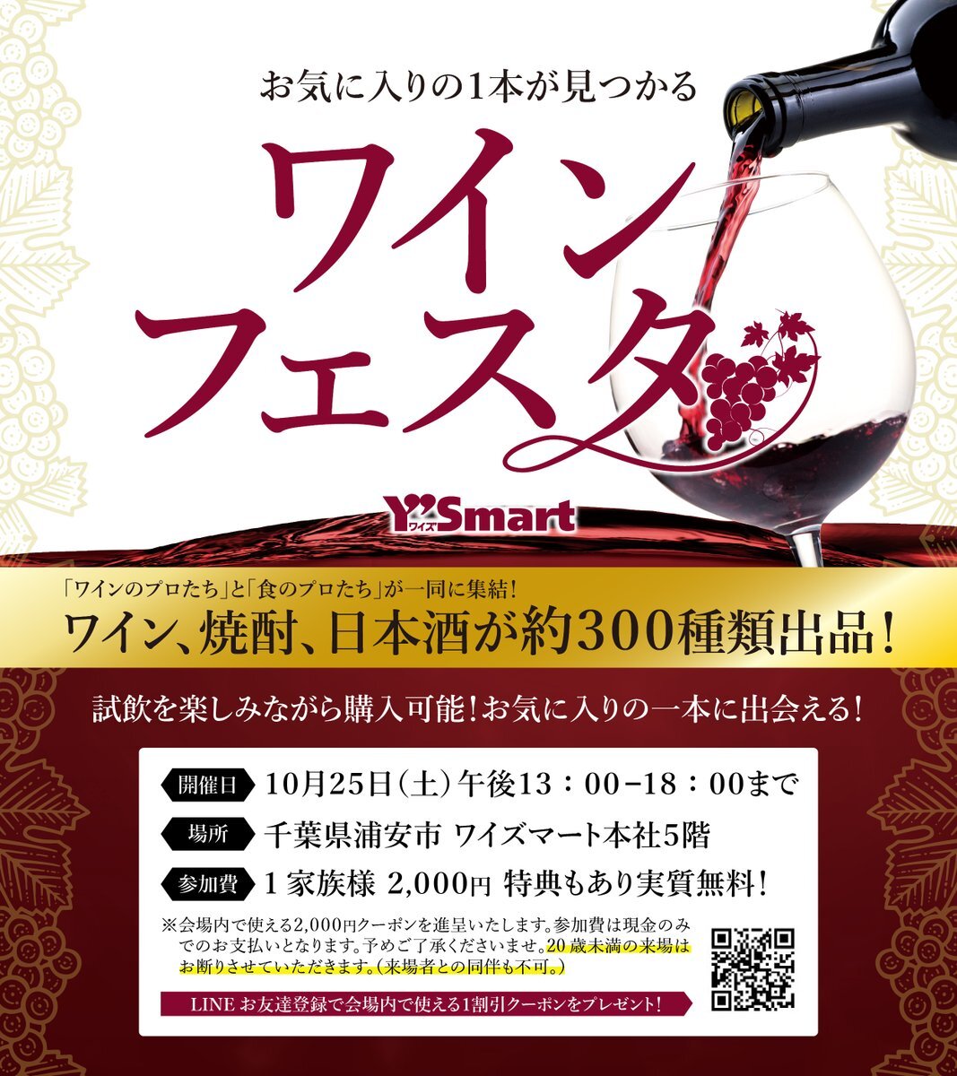 \10月のワインフェスタ開催告知/ 10/25(土)ワインフェスタ開催 ワイン・焼酎・日本酒が約300種類集結! 試飲や試食を楽しみながら お気に入りの1本が見つかる おいしい出会いの場! ぜひ、お出かけ下さい!🐰 ※詳細は画像をご覧ください。 #ワインフェスタ #ワイン好きと繋がりたい #ワイズマート pic.x.com/SwSpCqejV4
