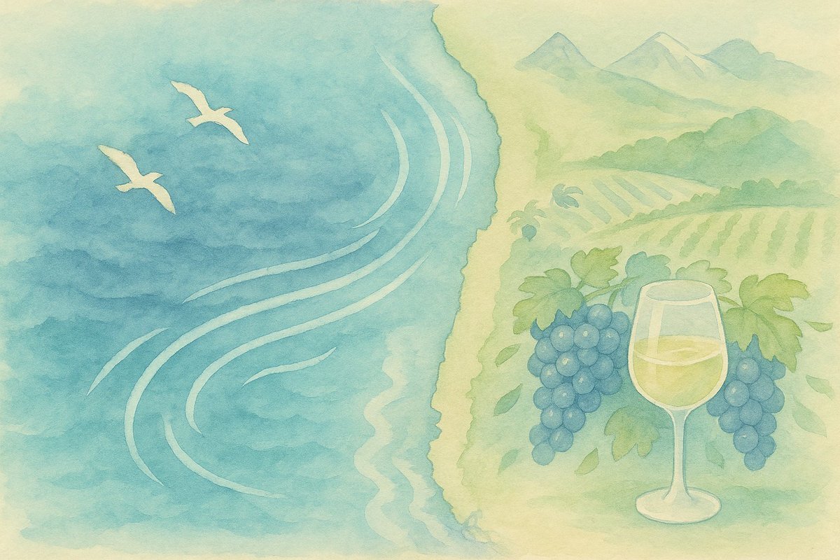 チリの海を流れる「フンボルト海流」🌊 その温度、なんと8〜11℃❄️ この冷たい海流が海風を冷やし、ぶどう畑に“天然のクーラー”を届けているんです🍇✨ #チリワイン #ワイン好きと繋がりたい pic.x.com/M5Nmy29KUH