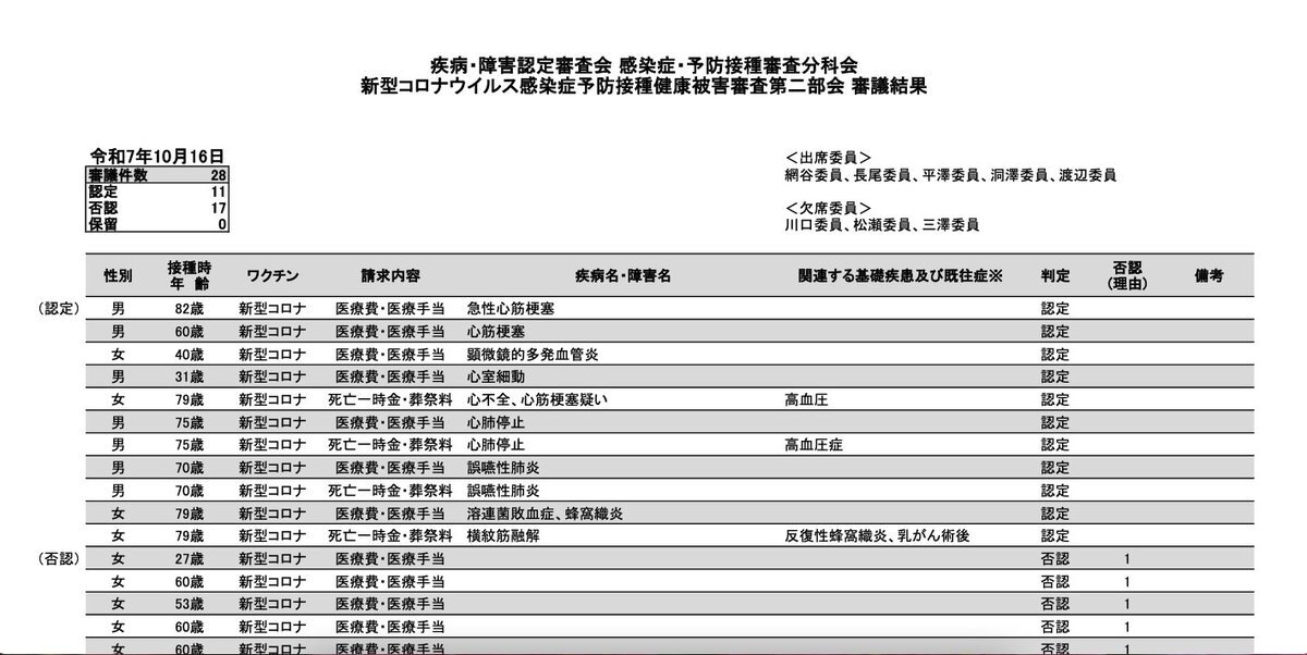 疾病・障害認定審査会 (感染症・予防接種審査分科会新型コロナウイルス感染症予防接種健康被害審査第二部会) 審議結果 📷審議結果[PDF形式:117KB]📷 mhlw.go.jp/stf/newpage_64… #ワクチン副反応 #コロナワクチン #コロナ