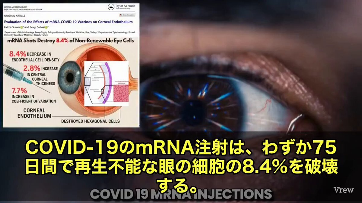 🚨衝撃です!たった75日で目の細胞が壊れるワクチン被害が、専門家によって暴露されています😨 今回は疫学者ニコラス・フルシャー氏が、ファイザーのmRNAワクチンが眼球に与える深刻な影響について、恐ろしいデータを示しています…。