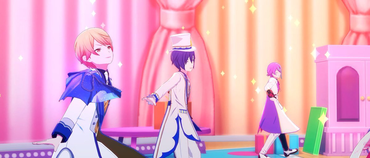 先日追加された、後付け3DMV 千本桜は、KAITOさんもいるので即日チェックしましたが…他のMVは、そういえばゆっくり見てなかったな〜と思い出し、今更ながら一通り見てみましたが… どりーみんチュチュ、めっちゃかわいいです💕 今組んでるメンバーで、スクショを撮ってみました✨ #KAITO #ワンダショ pic.x.com/geoh37GGpO