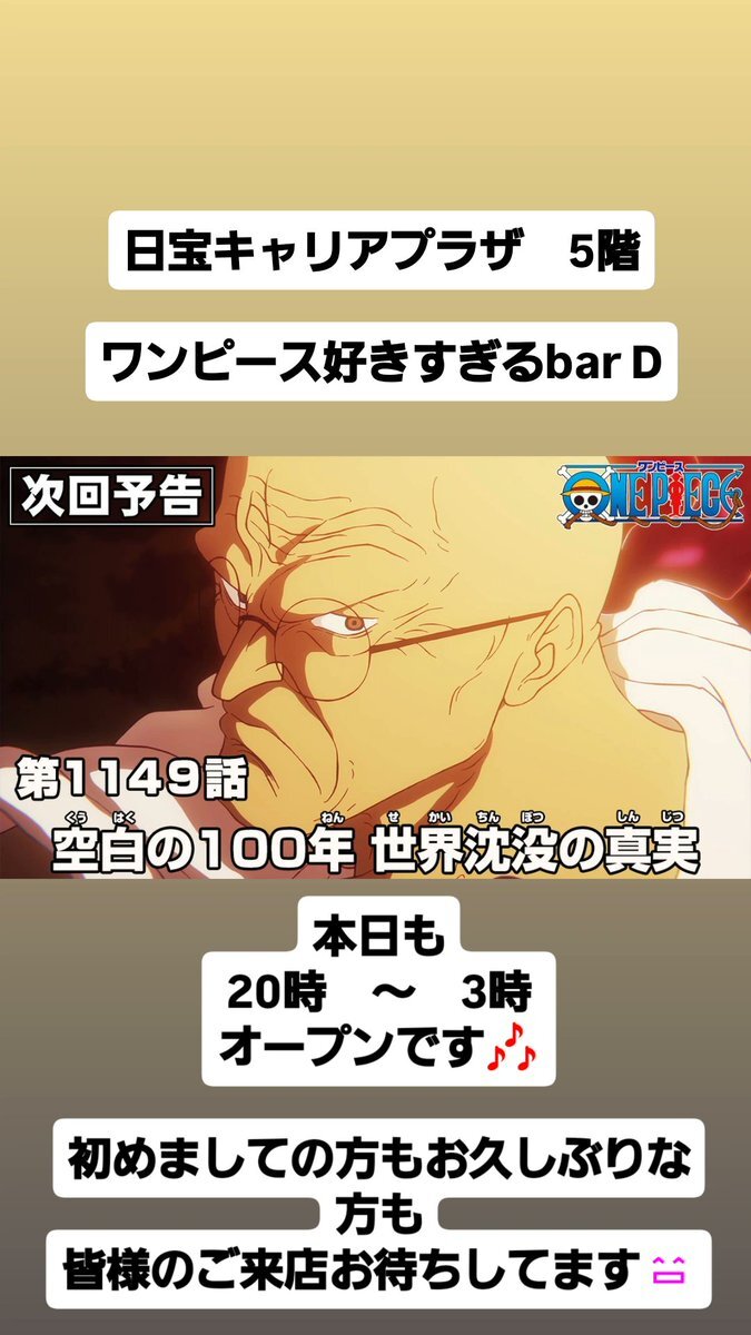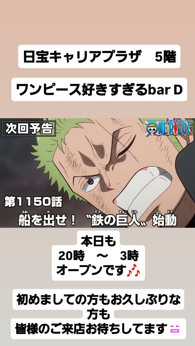 日宝キャリアプラザ 5階 ワンピース好きすぎるbar D 本日も 20時 ~ 3時 オープンです🎶 初めましての方もお久しぶりな方も 皆様のご来店お待ちしてます😄 #ワンピース #ワンピースバー #ワンピースカードゲーム #ワンピカード #ワンピース好きさんと繋がりたい #バウンティラッシュ