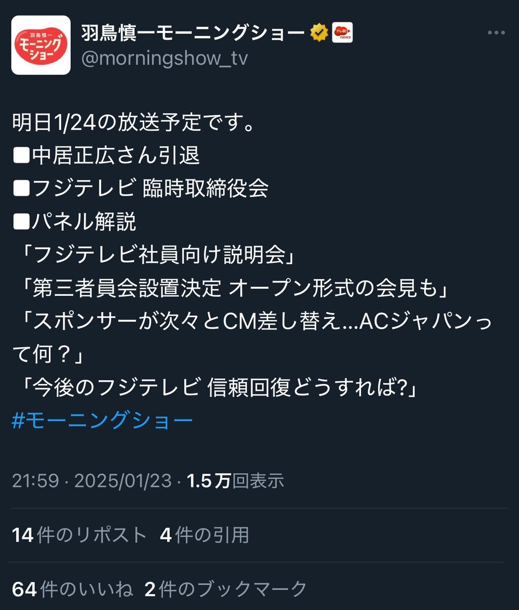 返信先:@morningshow_tvさすが視聴者を #一億総白痴 にする無能集団テレビ局 クソぶりを発揮ゴミレベル 早河洋の東京ドリームパークは放置 #モーニングショー pic.x.com/ySQR1r2IKi
