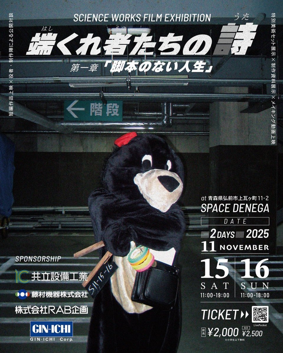 いよいよ明日から! #SCIENCEWORKS さんの映像展 『 #端くれ者たちの詩#一揆の星 メンバーが多数出演! ご期待ください✨ 📝ご予約 t.livepocket.jp/e/tkj_v 🎪SPACE DENEGA 🗓️11/15㈯11:00〜19:00 11/16㈰11:00〜18:00 🎫前売2,000円、当日2,500円  小学生以下:入場無料 pic.x.com/J3Vu9qCjEP