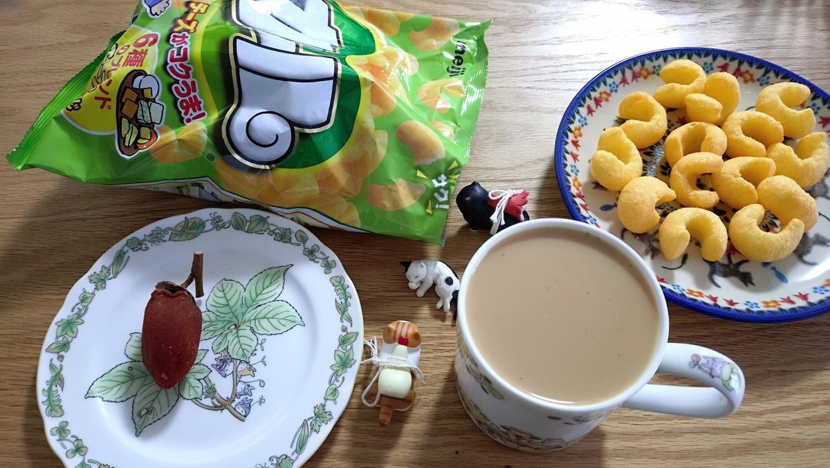 今日のお茶は、一芯二葉さんの「ディンブラ グレートウェスタン茶園」です。 おやつは、「郷愁の柿」と「カール」です。 #茶好連 #一日一茶 カールは、先日、箱根に行った時に見つけました。 夫はチーズ味が好きです。 pic.x.com/GTg5ZQt4lB