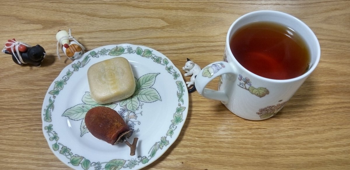 今日のお茶は、甲斐製茶園さんの「みなみさやか」です。 おやつは、柿の専門さんの「柿もなか」「郷愁の柿」です。 #茶好連 #一日一茶 以前、奈良に永瀬卓さんのお人形を見に行った時、食べたお菓子をお取り寄せしました。 郷愁の柿は、干し柿の中に栗餡が入っています。 pic.x.com/YxGGDz99wh