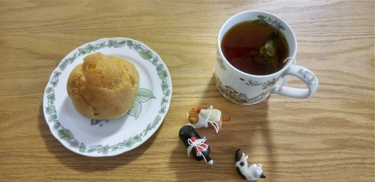 今日のお茶は、ネパリバザーロさんの「手摘みのお茶」です。 おやつは、「シュークリーム」。 #茶好連 #一日一茶 キャラメルクリームのシュークリームでした。 pic.x.com/bHFSUyUMdM