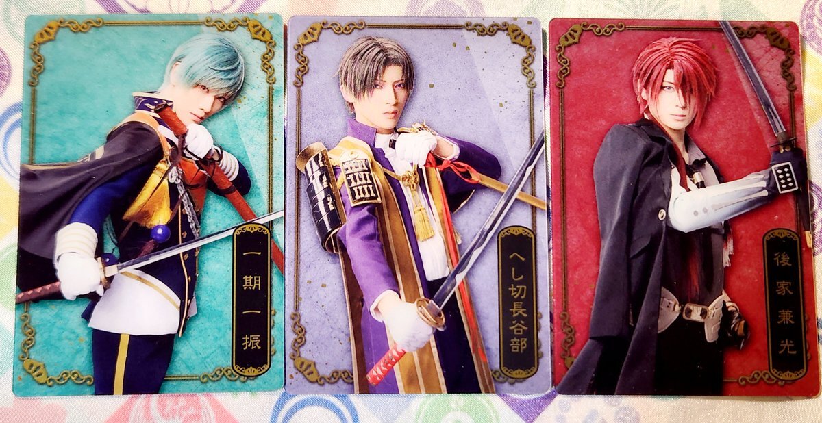 2025年10月27日(月)ミュージカル『刀剣乱舞』10周年記念ツインウエハースを獲得した景品です。 #刀剣乱舞 #刀剣男子 #カード #山姥切国広 #小竜景光 #五月雨江 #村雲江 #一期一振 #へし切長谷部 #後家兼光 pic.x.com/rbp6Joqd9B