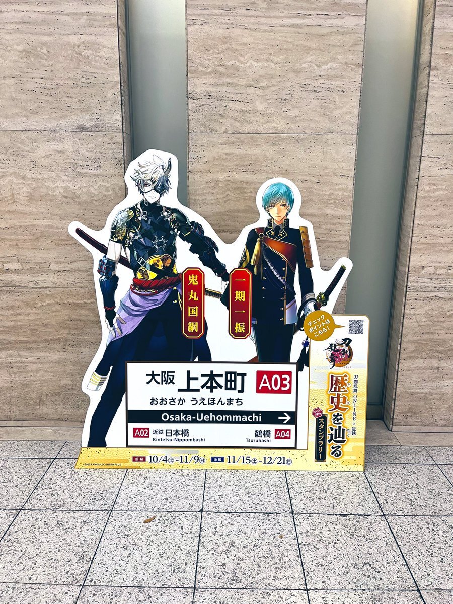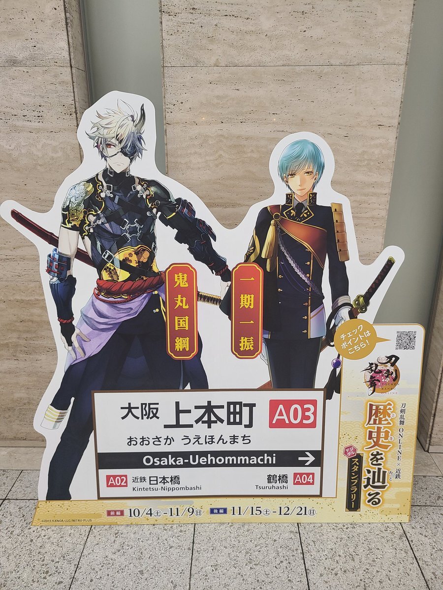 上本町駅💓 (ダイソー前の入り口入ってすぐ)コラボカフェ前にパネルがあった 🚃13番出口目指して地上に上がって駅構内入って右手にカフェ☕ #一期一振 #鬼丸国綱 pic.x.com/lBXgDhJMKA