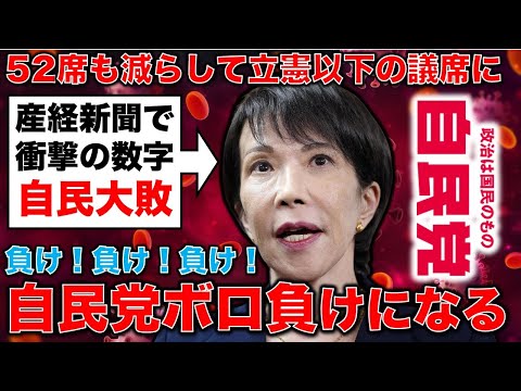 衝撃! 次の総選挙では自民党が144議席、立憲民主党が187議席! 公明党が連立から離れていった影響を産経新聞が試算。公明の支援なしでは自民52議席減! そのうち立憲が39議席を獲得! 自民・維新はともに沈んでいく。日本政治は「大激変」の時代へ!「一月万冊」公開中! youtube.com/watch?v=fghbs6…